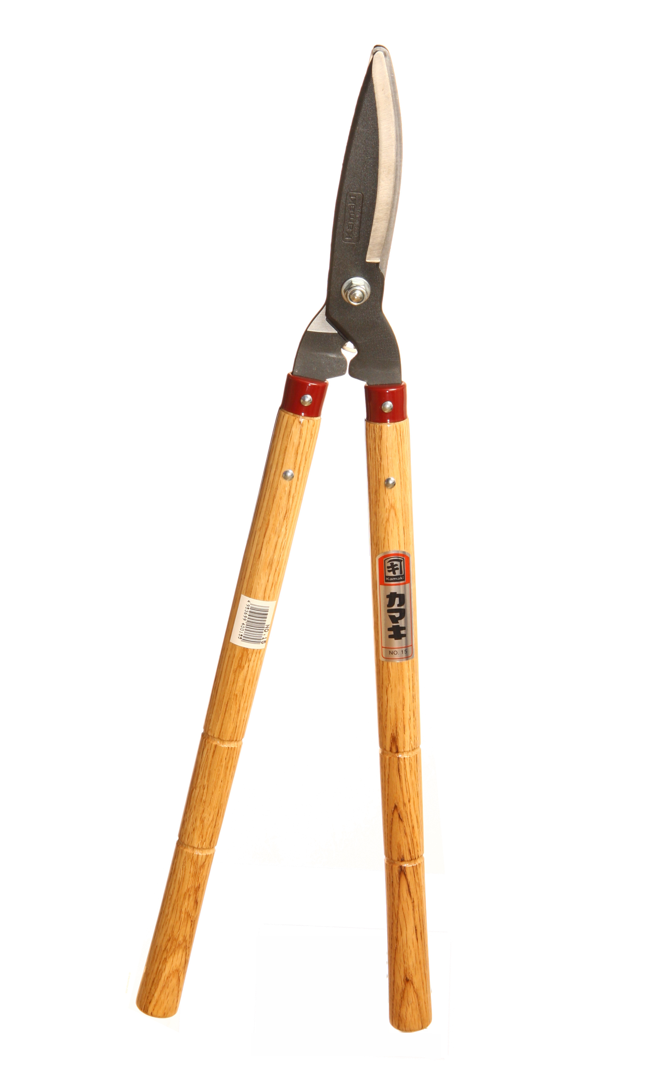 | Kamaki No.15 Hedge Shears (strong type) Hardwood handle long-reach medium blade hedge shears | Wooden-handle long-reach Kamaki No. 15 hedge shears for trimming hedges and topiary, curved blade for fast work. Hardwood handles, hardened steel pivot mechanism and blades. Blade length 160mm Total length 640mm Weight 850g Cutting capacity 15-20mm, recommended for clearing and shaping small twigs and foliage. | R390 |