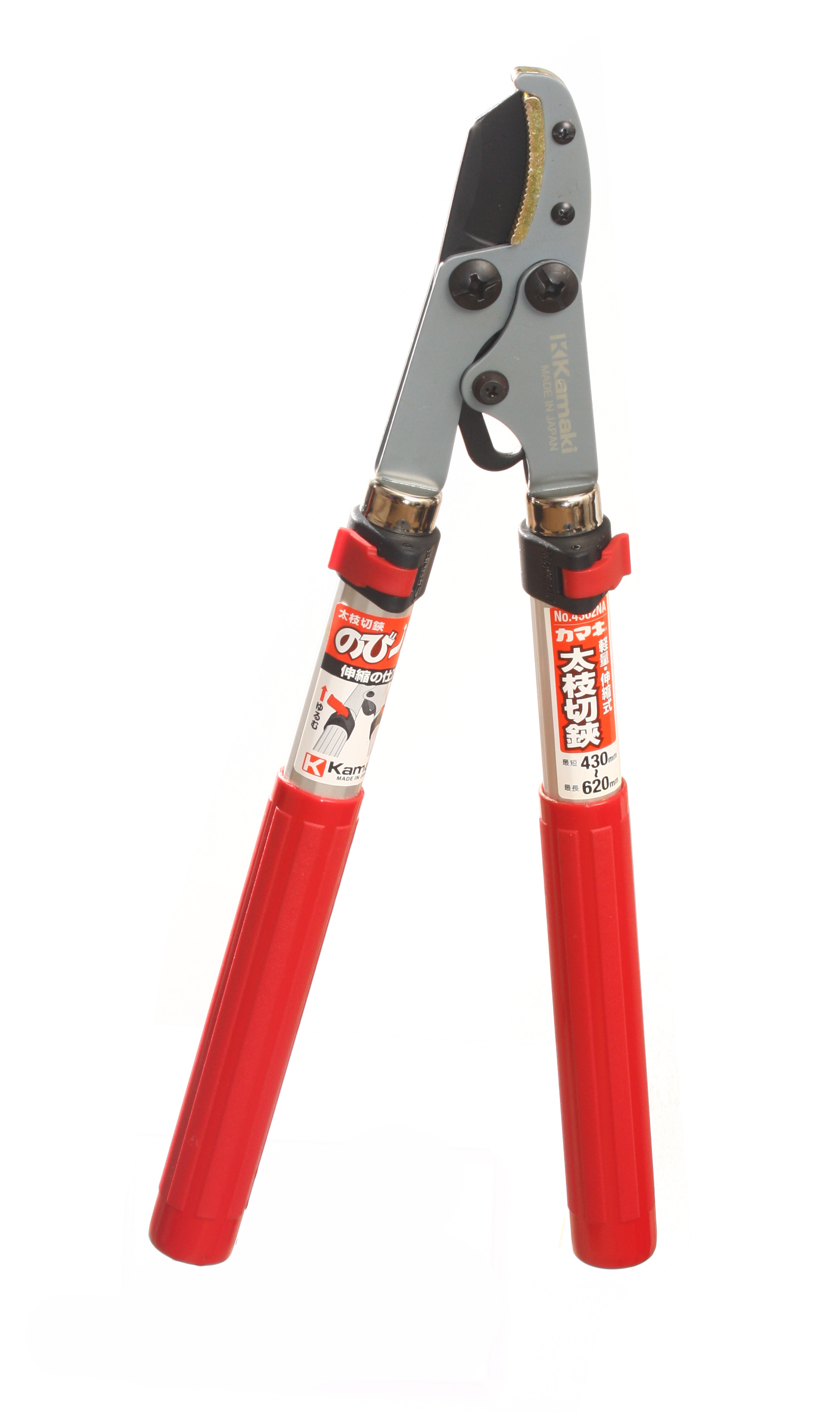 | Kamaki No. 4362NA Lopper (anvil type), extendable handle Lightweight and robust 55mm blade lopper with, extendable aluminium handles | Lightweight loppers for day-long use, with extendable telescopic aluminium handles for versatility working in confined spaces. Hardened steel pivot mechanism and blades. Blade length 55mm Total length 430mm extends to 620mm Weight 760g Cutting capacity 30mm | R545 |